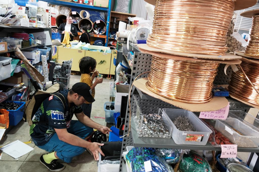 This program leans towards free exploration of a range of materials that could be found around the house as well as Reverse Garbage exclusive industrial offcuts. Students lean into their imaginative skills to make their very own creation to take home – we’ve seen everything from bugs to rocket ships to jewellery get made. Our educators will assist students in techniques to connect different types of materials from tying, pining, and re-using stickers in place of conventional glue and tape. This program is intended to get students thinking about all the items in their lives that could be repurposed into interesting art projects.
